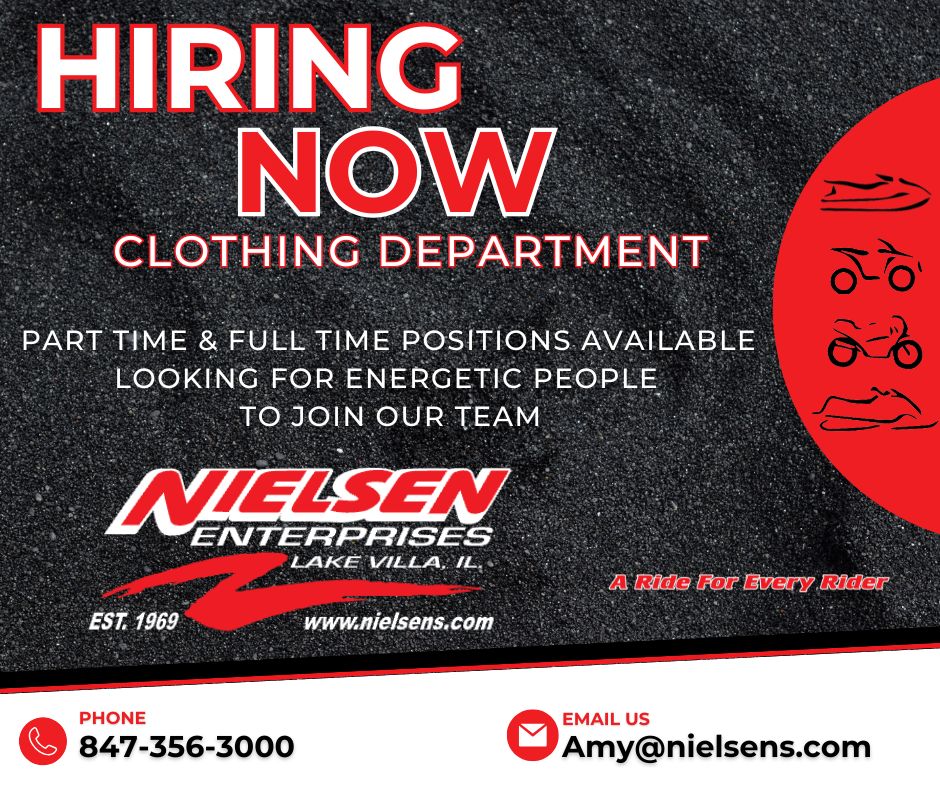 Since 1969, Nielsen Enterprises has been helping riders fuel their passion for adventure. Located in Lake Villa, Illinois, we proudly offer one of the largest selections of powersports and marine vehicles in Illinois. Whether you'reriding through dirt, snow, water, or pavement, we have street bikes, 3-wheel motorcycles, ATVs, UTVs, snowmobiles, personal watercraft, and Boats to match your lifestyle.