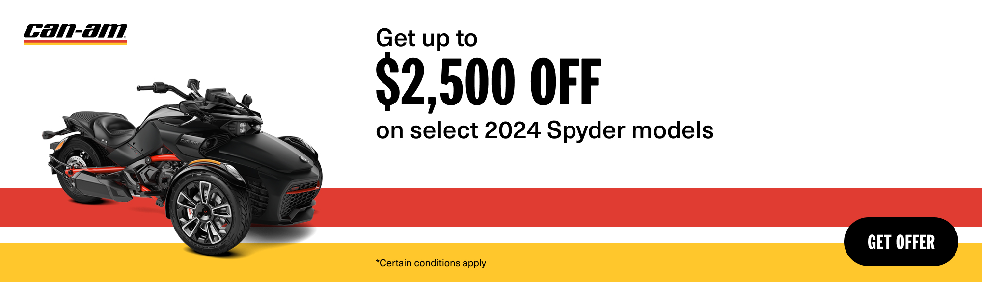 Get a rebate up to $2,500 on select 2024 Can-Am Spyder models